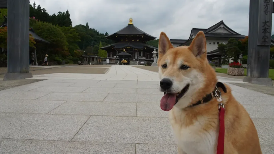 Sunny in front of the new Jogi Nyorai Saigoji complex